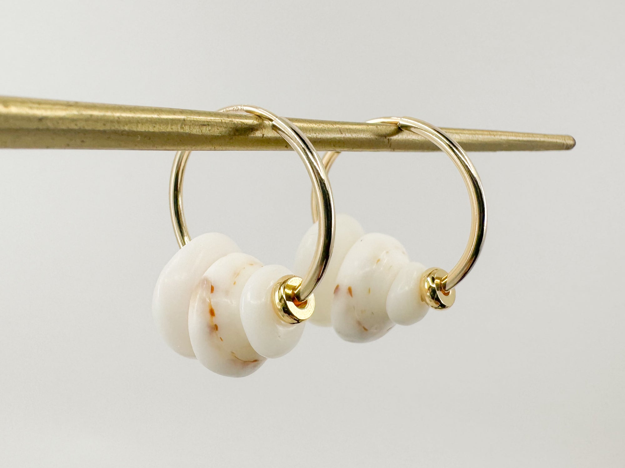 14K GOLD FILLED: To clean, wipe with an untreated cloth or mild soapy water. STERLING SILVER: Sterling silver is an alloy containing metals that react with chemicals found in air and produce tarnish; high moisture levels, exposure to sunlight and contaminants such as salt water increase this reaction. Simply use a silver polishing cloth to restore shine (Sunshine Polishing Cloth available for purchase). FOR BEST CARE: Avoid exposure to any chemicals, harsh soaps, or lotions, and remove before swimming in saltwater or pools, showering, exercising, or working with materials that could break or damage your jewelry. Store in your 'OMIMO MAUI jewelry pouch provided with every purchase. NOTE FOR PUKA SHELL HOOP EARRINGS: Carefully pull apart and guide earring post out of and back into hole. Do not bend earring post.